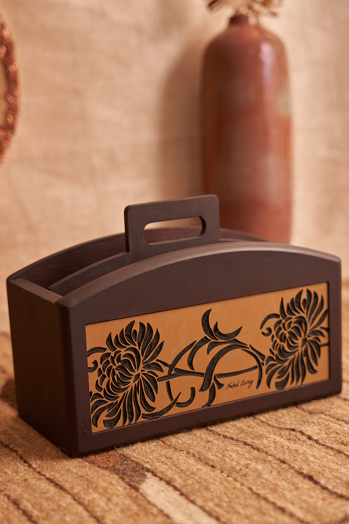 Elegantly organize your flatware with this beautifully crafted holder. Perfect for keeping spoons and forks neatly arranged, whether for everyday meals or special occasions.